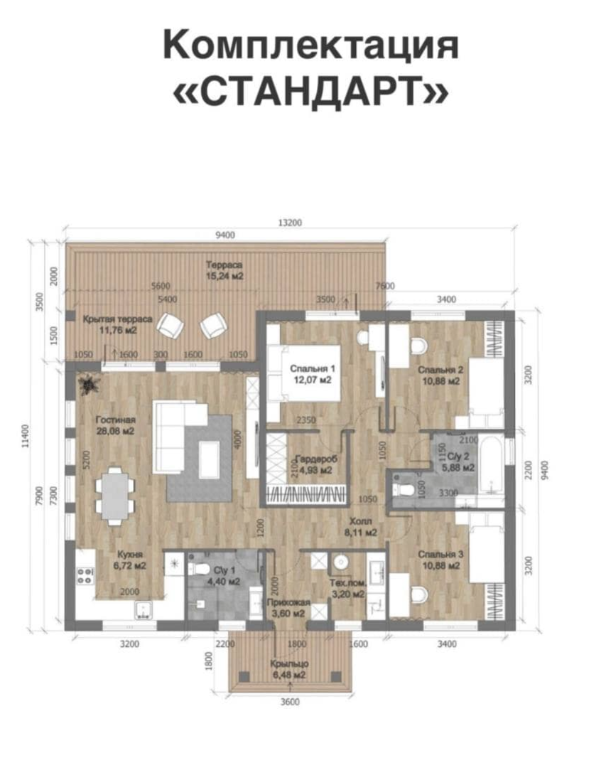 - Площадь: 133,5 м2 (теплый контур 96 м2)